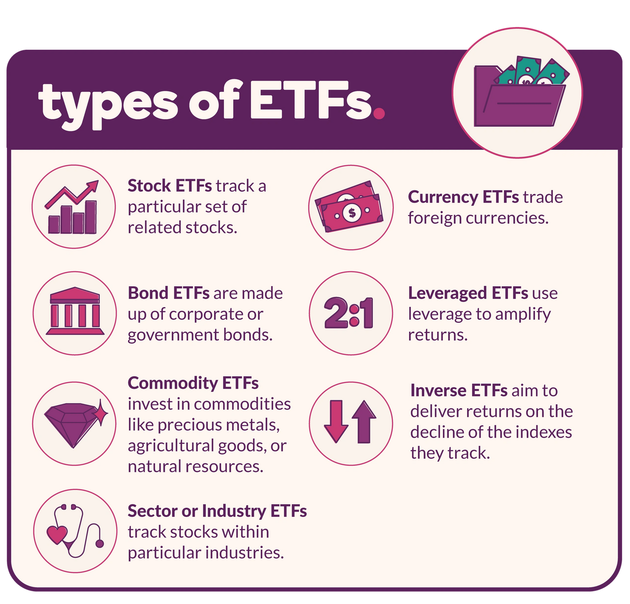 There are so many types of ETFs since they are designed to track literally anything in financial markets. We have various;
